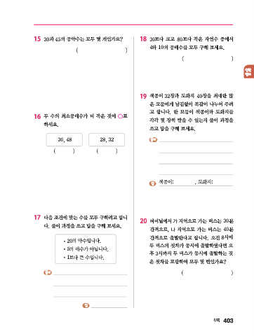 15 30과 45의 공약수는 모두 몇 개인가요? 18 30보다 크고 80보다 작은 자연수 중에서