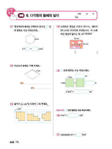 보충 6. 다각형의 둘레와 넓이 학년 반 번