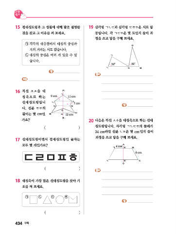15 점대칭도형과 그 성질에 대해 잘못 설명한 19 삼각형 ㄱㄴㄷ과 삼각형 ㄷㄹㅁ은 서로 합 이름