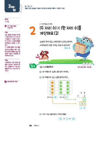 하고, 덧셈식으로 구한 경우 12×4 계산하기 문제 해결 | 추론 | 의사소통