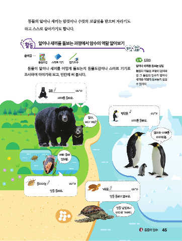 동물이 알이나 새끼를 어떻게 돌보는지 동물도감이나 스마트 기기로