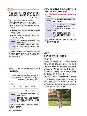 의 역할에 대한 설명으로 옳은 것은 어느 것입니까? 예시 답안 펭귄은 암수가 함께 새끼를 돌보고, 곰은 주로 암컷이