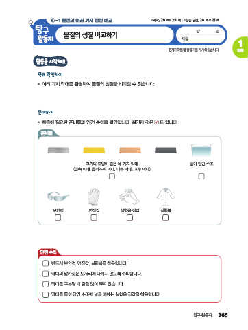 2 -1 물질의 여러 가지 성질 비교 『과학』 28 쪽~29 쪽 『실험 관찰』 20 쪽~21 쪽