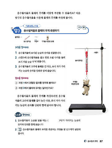탐구로 용수철저울을 사용해 물체의 무게를 측정해 봅시다.