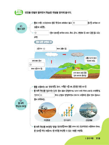 물의 이동: 지구상에서 물은 한곳에 머무르지 않고 1 을/를 바꾸며 자