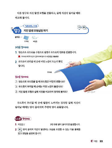 다음 탐구로 지진 발생 모형을 관찰하고, 실제 지진이 일어날 때와