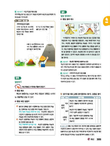 모습을, 안쪽에는 화산 분출 후의 모습을 그립니다. 러 화산의 형성 과정, 분출 현황, 우리 생활에 준 영향 등에 대해 더 알