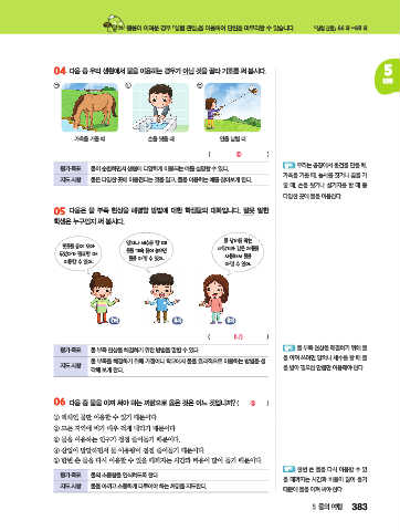 04 다음 중 우리 생활에서 물을 이용하는 경우가 아닌 것을 골라 기호를 써 봅시다. 5
