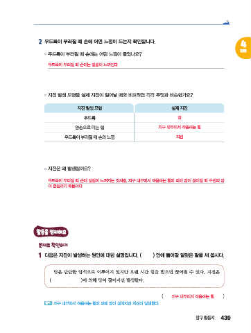 1 다음은 지진이 발생하는 원인에 대한 설명입니다. ( ) 안에 들어갈 알맞은 말을 써 봅시다.
