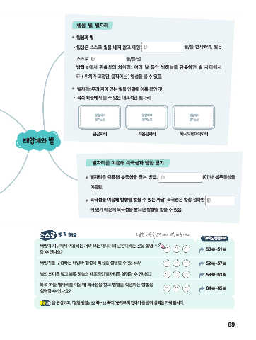 별의 의미를 알고 북쪽 하늘의 대표적인 별자리를 설명할 수 있나요? 58 쪽 ~ 63 쪽