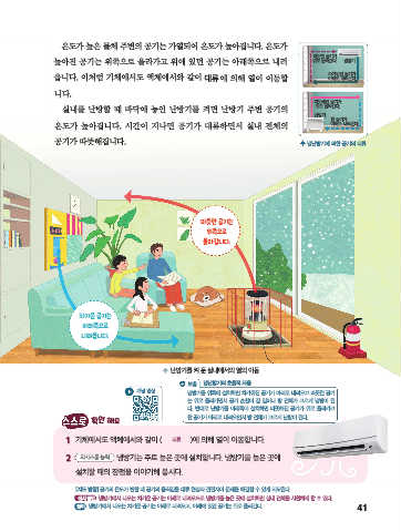 풀이 냉방기에서 나오는 차가운 공기는 아래로 내려오고, 아래에 있던 공기는 위로 올라간다. 41