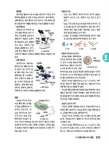 관찰하는 데 사용한다. 져 있으며, 스스로 생명 활동을 유지할 수 없고 살아 있