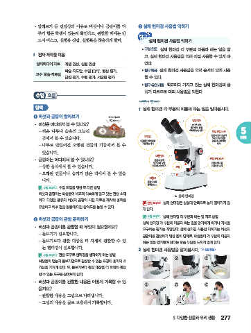 재물대 2 실체 현미경 사용법을 알아봅시다. 실험 관찰