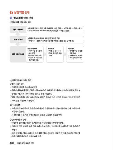 • 약품류를 관리하는 책임자 및 담당자를 지정해 안전사고에 대비한다.