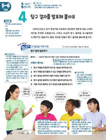 있다. 4 탐구 결과를 발표하고 친구들의 질문에 답해 봅시다. 에서 활발한 의사소통이 이루