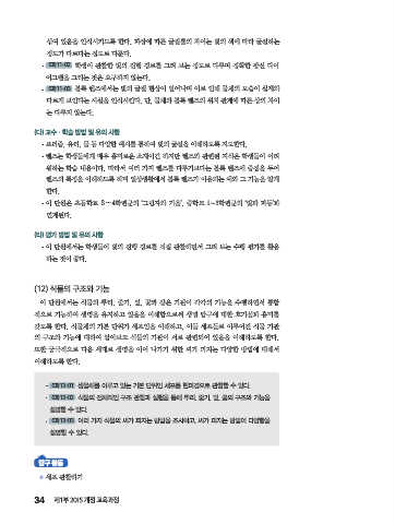 갖도록 한다. 식물체의 기본 단위가 세포임을 이해하고, 이들 세포들로 이루어진 식물 기관