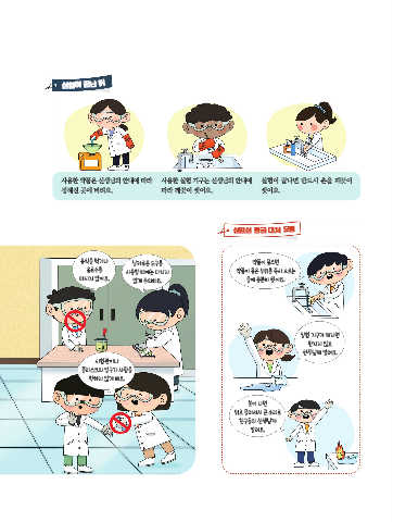 사용한 약품은 선생님의 안내에 따라            사용한 실험 기구는 선생님의 안내에           실험이 끝나면 반드시 손을 깨끗이
