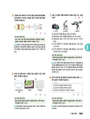 5 다음과 같이 레이저 지시기의 빛이 볼록 렌즈를 통과 7 다음 기구들에 대한 설명으로 옳은 것은 어느 것입