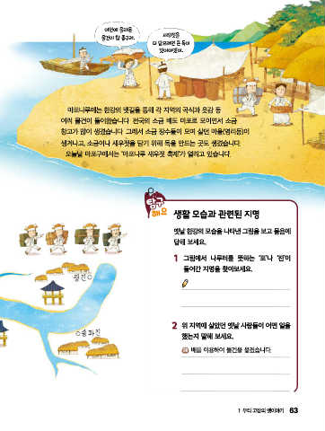 2 위 지역에 살았던 옛날 사람들이 어떤 일을