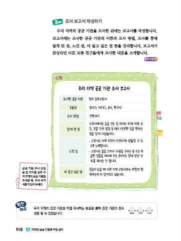 우리 지역의 공공 기관을 조사한 뒤에는 보고서를 작성합니다.