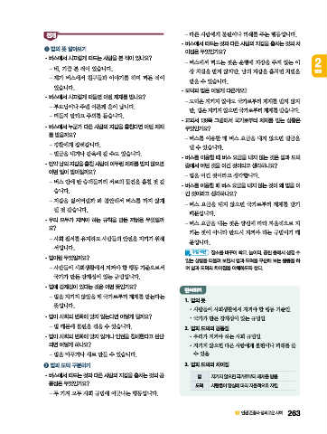 – 사람들이 사회생활에서 지켜야 할 행동 기준으로서 여 법과 도덕의 차이점을 이해하도록 한다.