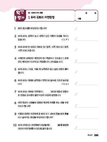 7 우리나라는 대부분 지역에서 ( )와/과 태풍의 영향으