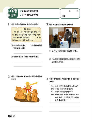 1 다음 헌법 조항을 보고 물음에 답하세요. 3 다음 사진을 보고 물음에 답하세요.