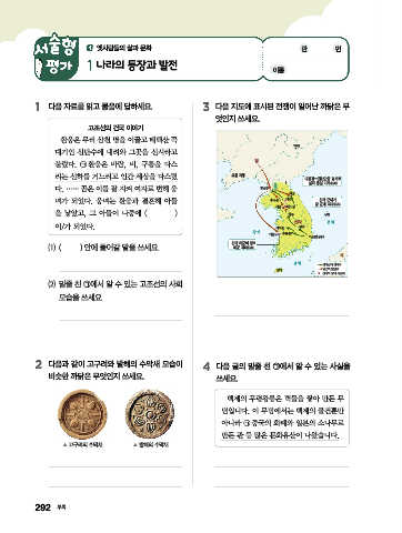 1 다음 자료를 읽고 물음에 답하세요. 3 다음 지도에 표시된 전쟁이 일어난 까닭은 무