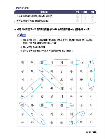세종 대에 이룬 과학과 문화의 발전을 생각하며 숨겨진 단어를 찾는 활동을 해 보세요.