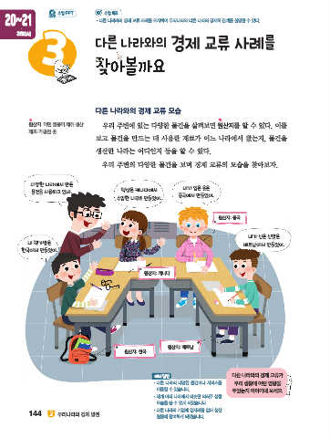 20~21 • 다른 나라와의 경제 교류 사례를 조사하여 우리나라와 다른 나라의 경제적 관계를 설명할 수 있다.