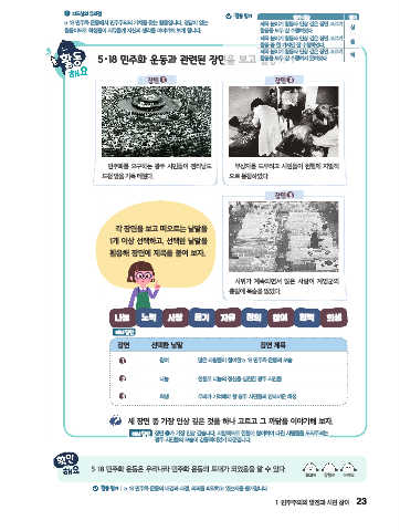 5·18 민주화 운동과 관련된 장면을 보고 활동하기 하