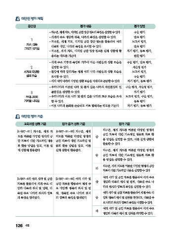 • 세계 여러 나라의 다양한 생활 모습을 이해하고 존중할 수 있다. 자기 평가, 동료 평가