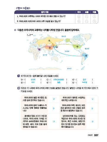 1. 우리나라와 교류하는 나라의 위치를 지도에서 찾을 수 있는가?